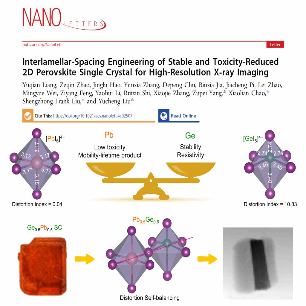 二维(2D)结构卤化铅钙钛矿具有高电阻率、高离子迁移势垒和大的X射线吸收系数,是X射线探测的极佳候选材料。然而,2D钙钛矿的高毒性和长的层间间距限制了它们在高灵敏度X射线探测中的广泛应用。