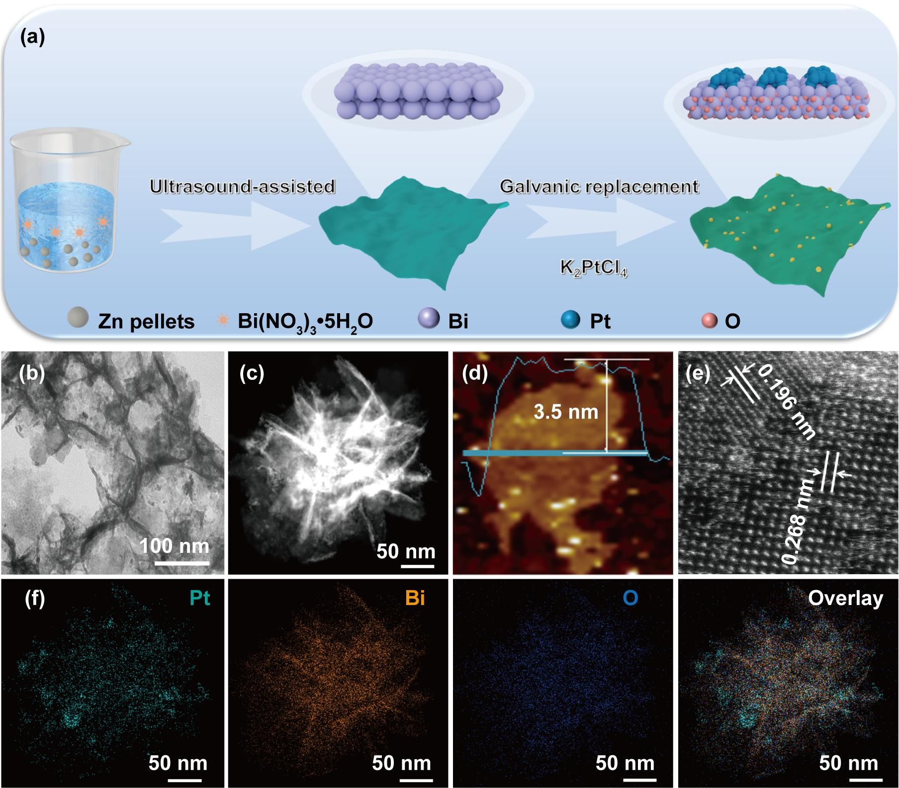 图. Pt-Bi2O3合成过程及物理表征
