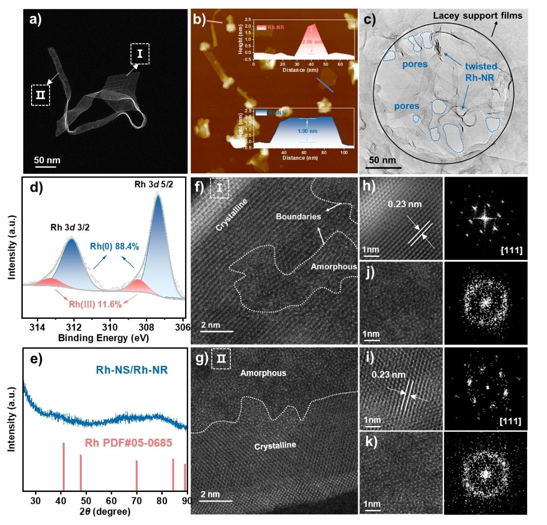 图. 铑金属烯纳米结构的物理表征