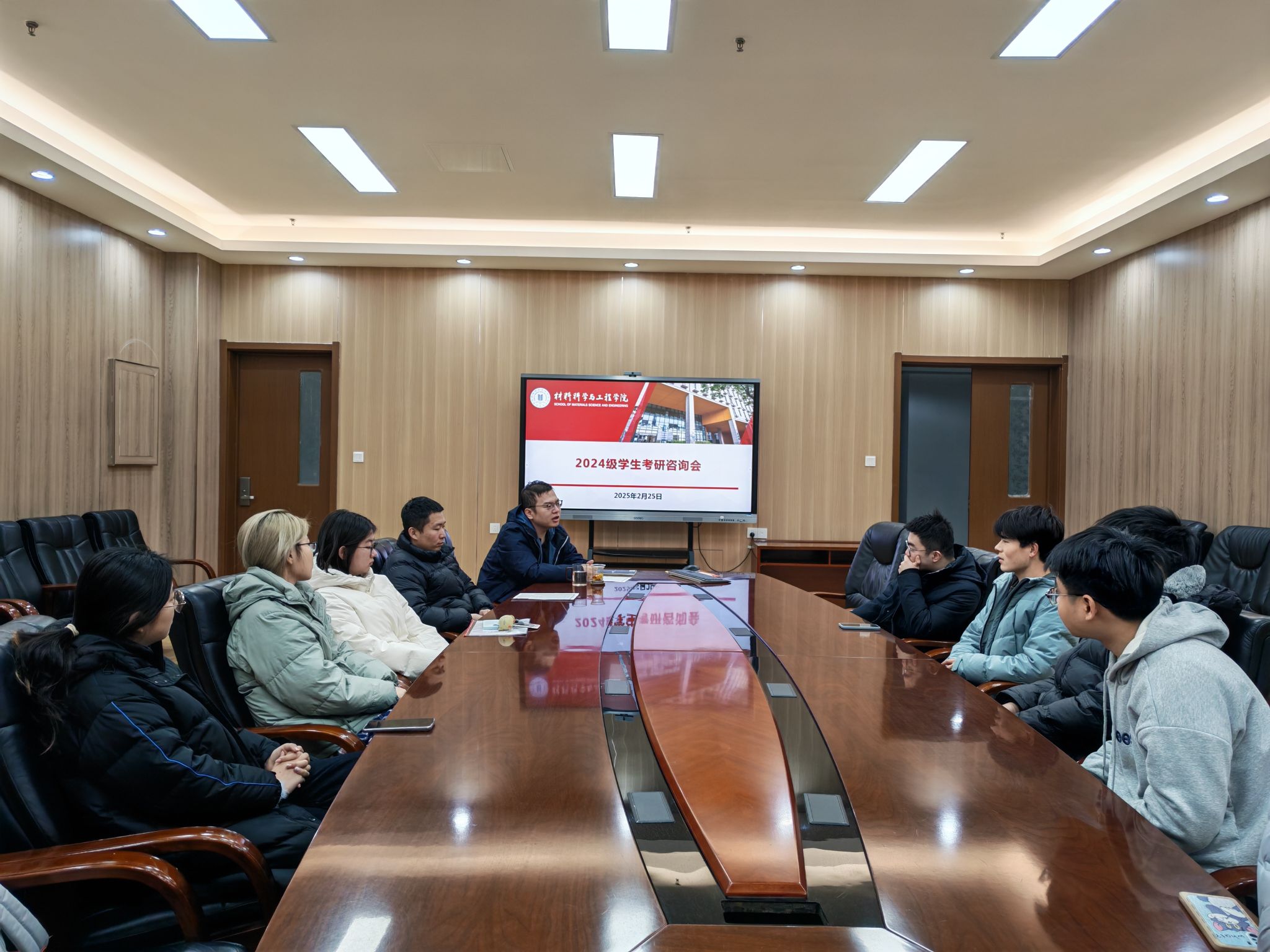 考研成绩与国家线公布后,为助力考研员工合理规划复试准备及调剂选择等关键事宜,伟德bv国际体育第一时间举办了考研员工咨询会,毕业班辅导员丁喜、毕业班班主任艾轩老师与牛天启老师共同出席会议,众多考研员工积极参与。