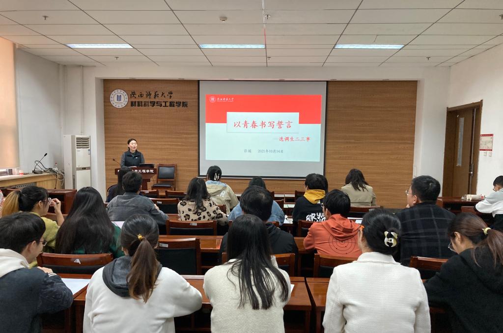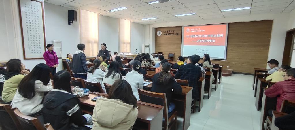 分享会开始,张媚老师首先分享了个人职业经历,希望同学们能够吸取经验,在求职过程中做好个人职业规划。接着,张媚老师以“以青春书写誓言——选调生二三事”为主题,结合个人指导选调生报考情况,从什么是选调生、为什么要报考选调生、报考选调生需要注意事项等方面与同学们分享了自己的思考和体会,重点介绍了陕西省选调生工作的报名条件、招录程序、培养政策等。
