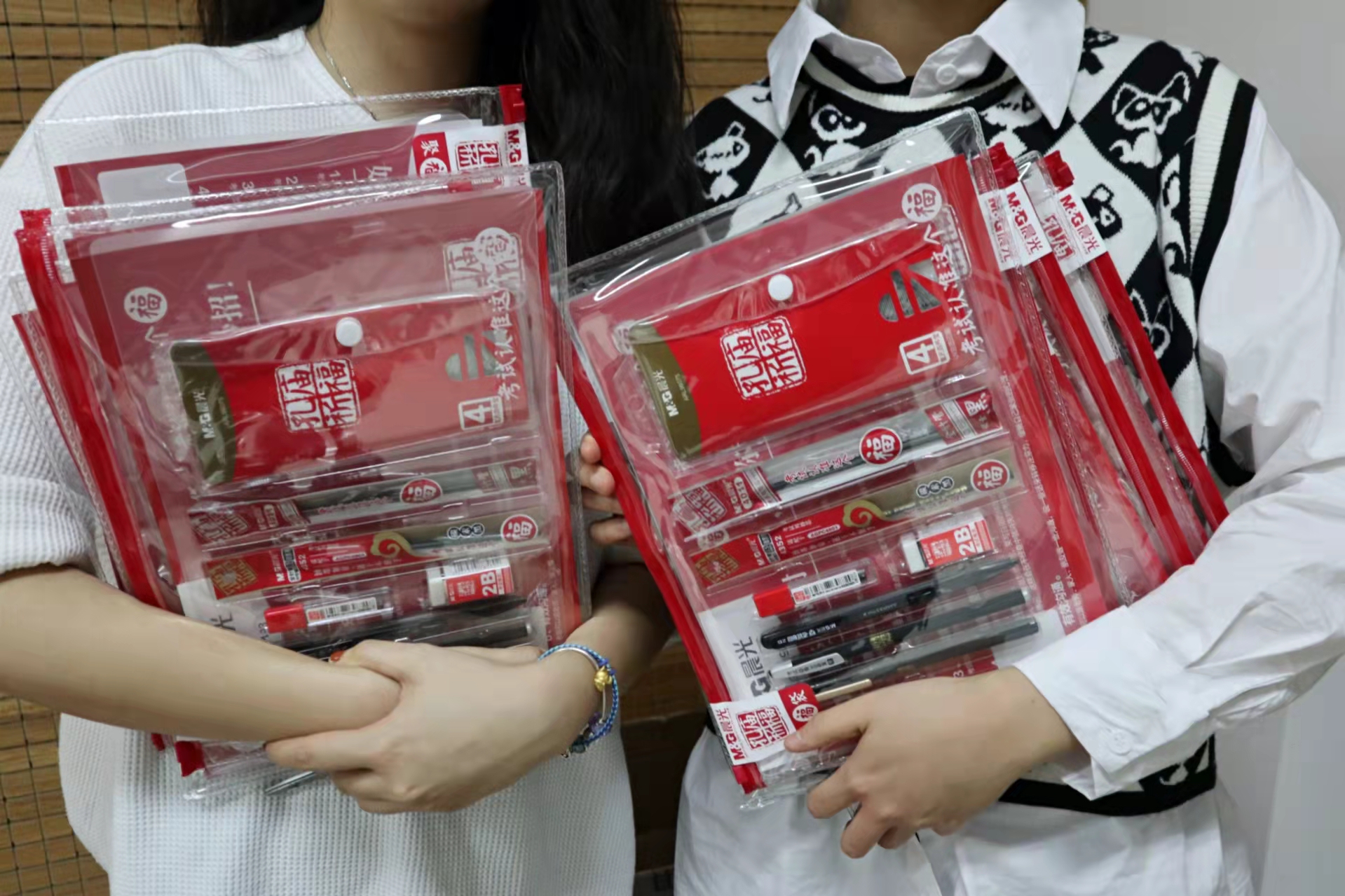 慰问活动第四项,每位考研学子都收到了一份来自集团的慰问礼包,精美的文具寄托了老师们殷切的期望和衷心的祝愿。