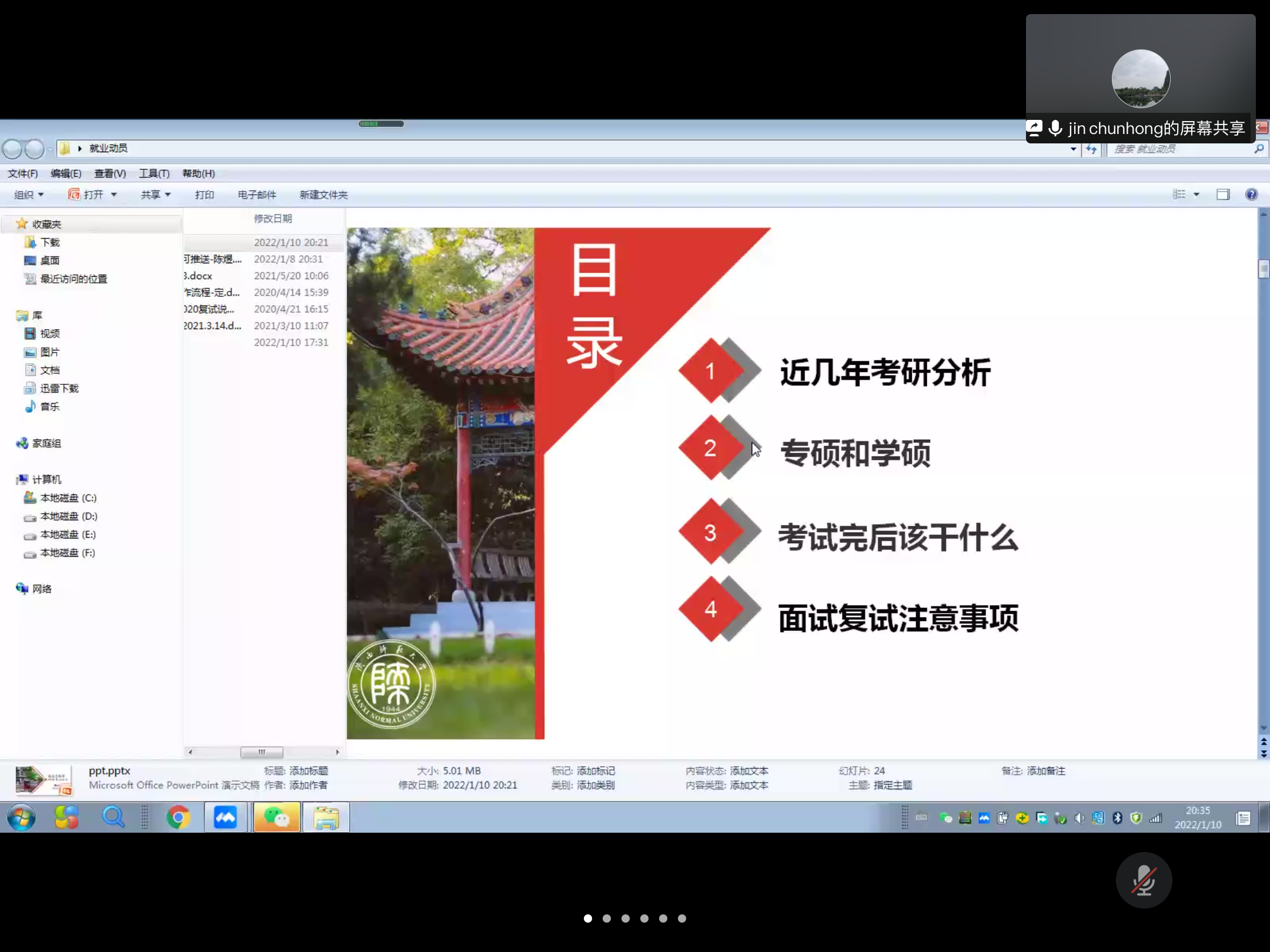 通过本次会议,提醒同学们考研初试的结束不是终点,而是另一个阶段的起点。在下一个阶段中,无论是准备复试或者是求职工作,都应做好规划、了解形势、全力以赴。在疫情期间也能够充分准备、有所收获。
