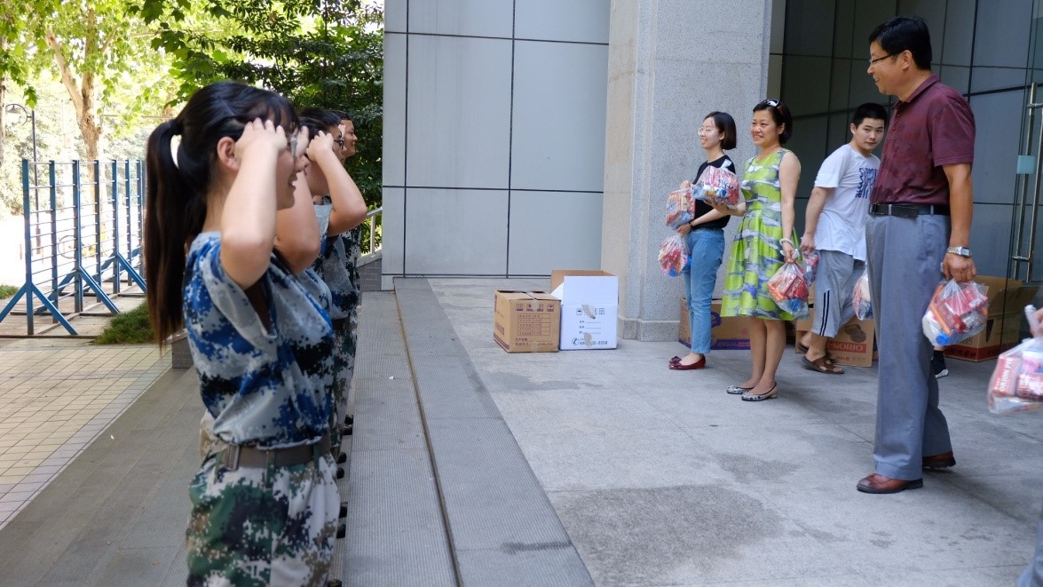 8月30日下午,总支书记杨千社、经理陈新兵、总支副书记靳春泓为军训中的同学们送来了公司的关怀与慰问,杨书记说,军训期间的锻炼是人生路上的一笔财富,在今后的学习和生活中,希望同学们能够以饱满的精神状态和团结友爱的团队精神克服一道道坎,共同度过大学四年的美好时光。