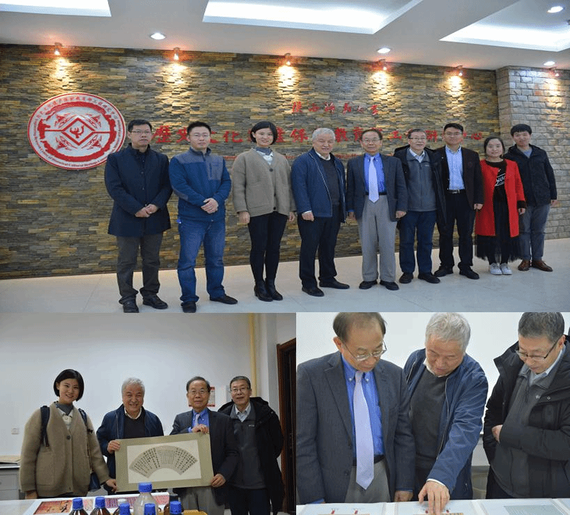 座谈结束后,在安忠维教授和李玉虎教授的陪同下,吴教授一行应邀参观了历史文化遗产保护教育部工程研究中心。参观过程中吴诗聪教授对李玉虎教授及其团队的文物修复保护取得的成就表示了极大的赞美,最后李玉虎教授赠予了礼物并合影留念。