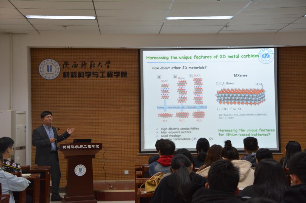 报告会上,杨树斌教授以超薄二维材料为主题,介绍了其在能量储存与转化甚至电子等领域广阔的应用前景。杨树斌教授课题组发展了多种新制备方法,如拓扑转化法等,通过将非范德华固体如MAX相等逐步转化为二维范德华过渡金属硫族化合物层,突破了上述方法的限制,并阐明了该方法热动力学控制的非范德华固体-范德华二维拓扑转化机制,宏量制备出一系列具有超高单层率(91%)和高稳定结构的范德华二维材料,为超薄二维材料在柔性电子、能源储存与转化领域的实际应用奠定了基础。