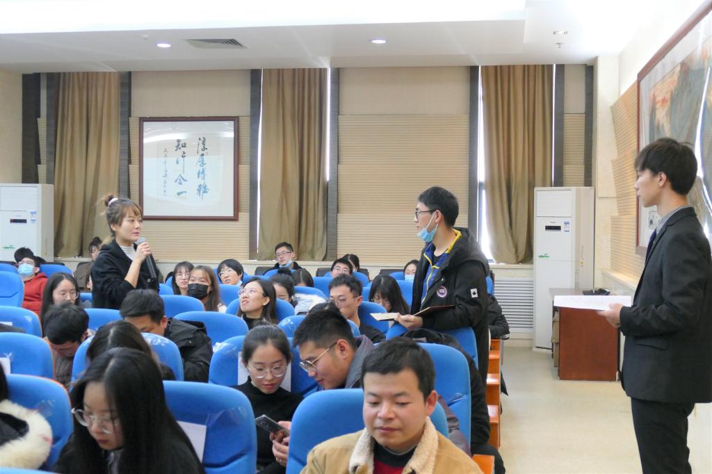 在中场休息时间,主持人组织现场的观众同学们开展了互动提问环节,同学们踊跃参与,纷纷提出了自己在听学术报告中的疑惑,由各参赛选手作出了详细的解答,老师们也针对大家的工作内容和汇报情况提出了一些很有建设性的意见和建议,通过交流促进各个课题组之间的学术沟通,也激发了同学们的科研热情。
