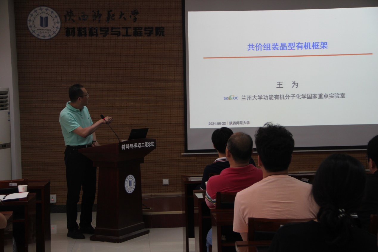 2021年6月22日下午,兰州大学王为教授应邀来公司作题为“共价组装构筑晶型有机框架”的“天工”学术报告。报告会由公司蒋加兴教授主持,公司张崇老师、化学与化工公司边红涛教授,公司及化学化工公司硕士生和博士生聆听了此次报告。