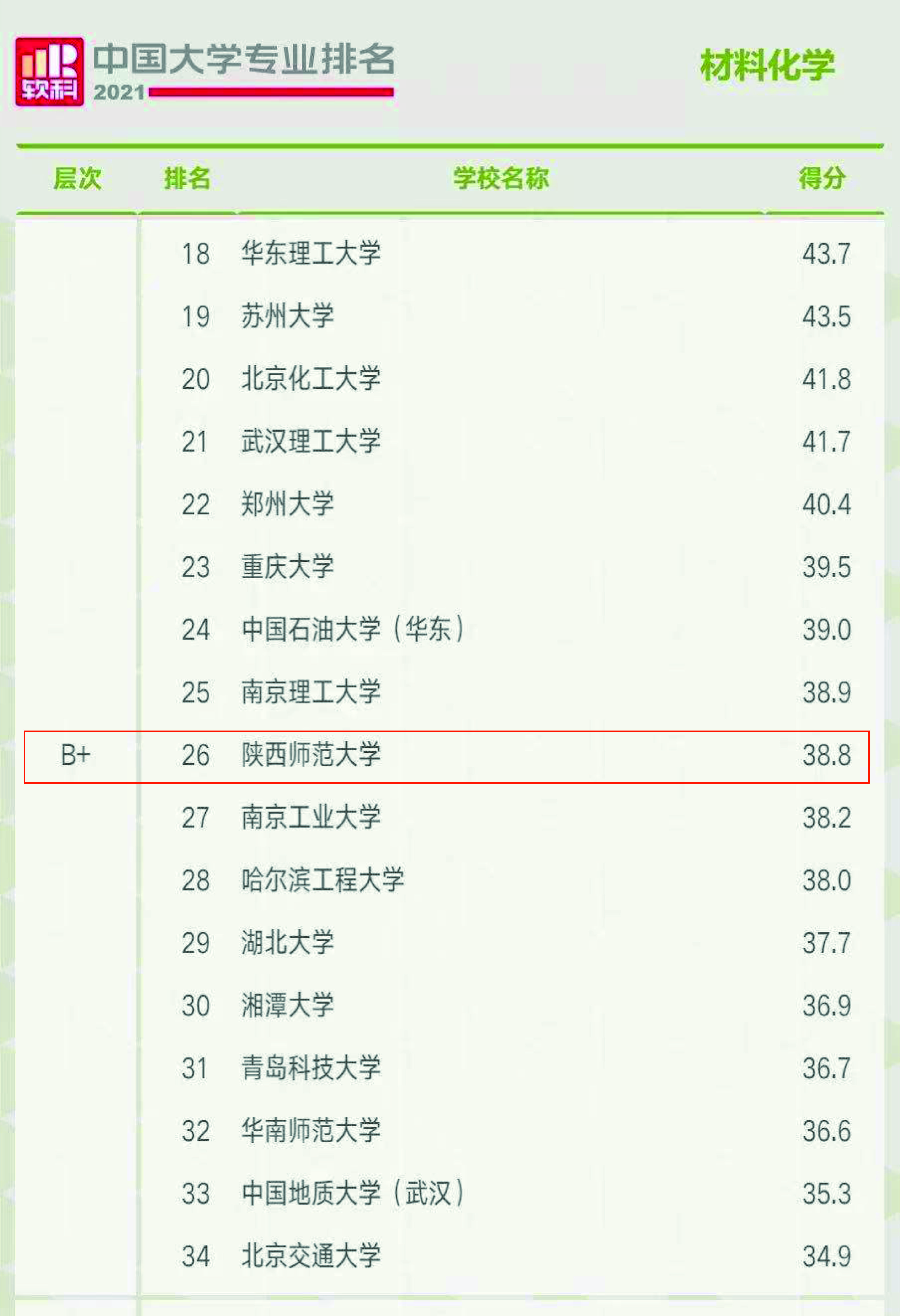 在材料化学专业排名中,共有85所中国高校上榜,公司排名26。