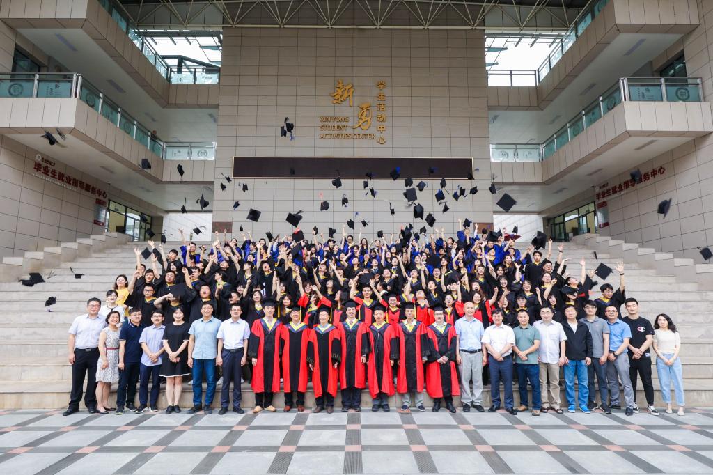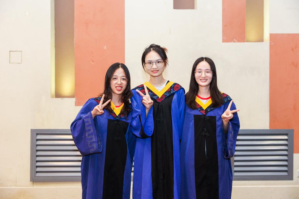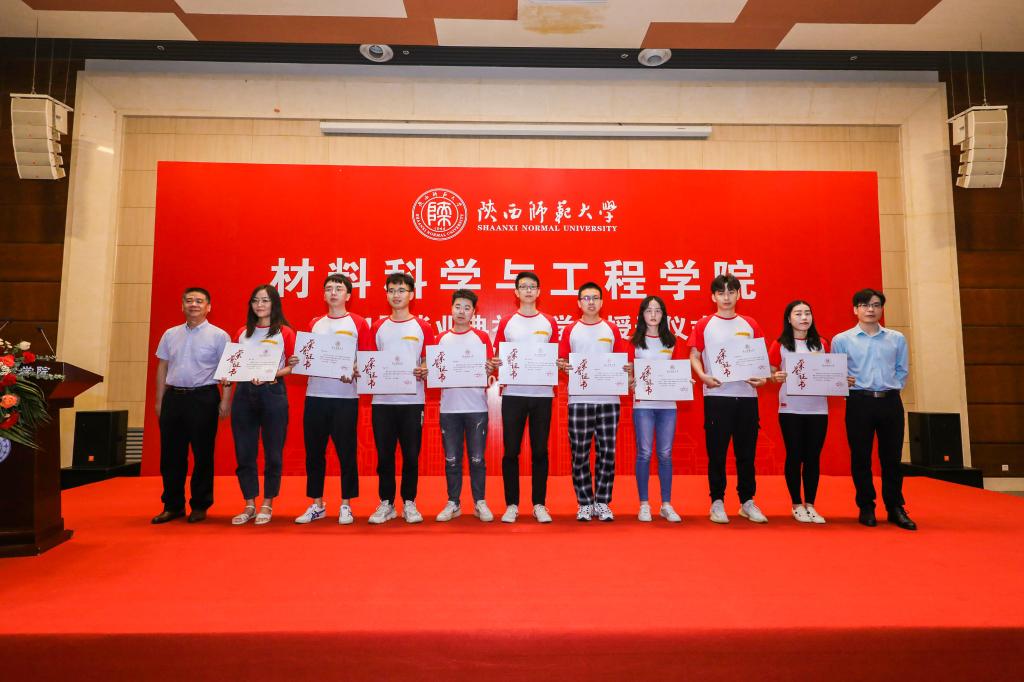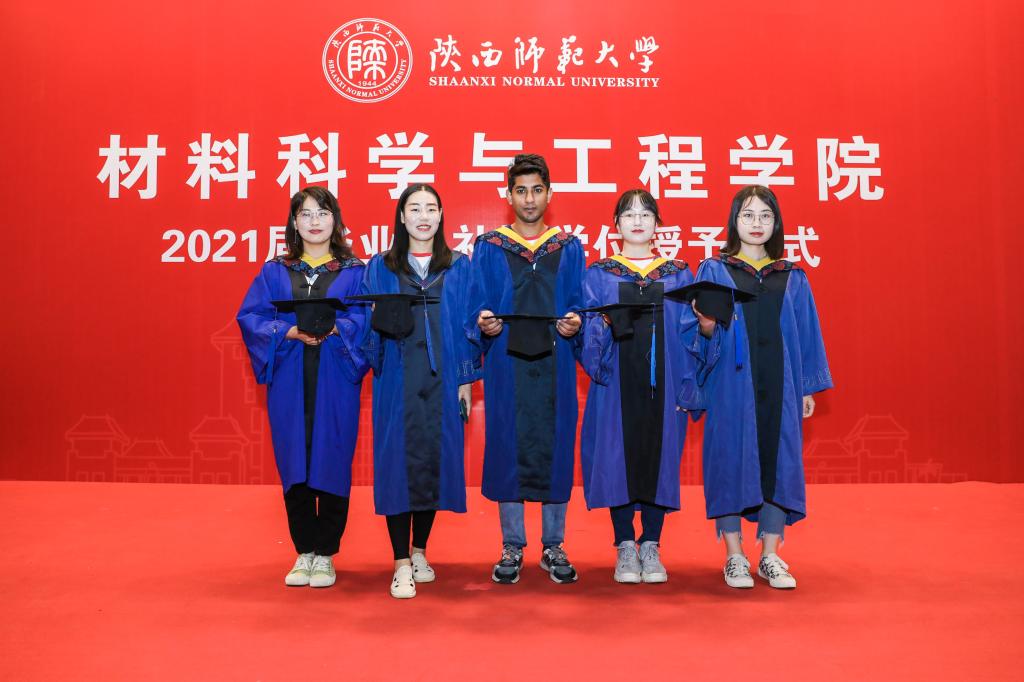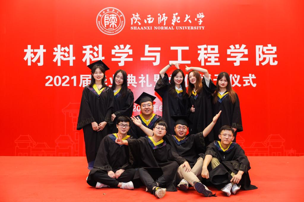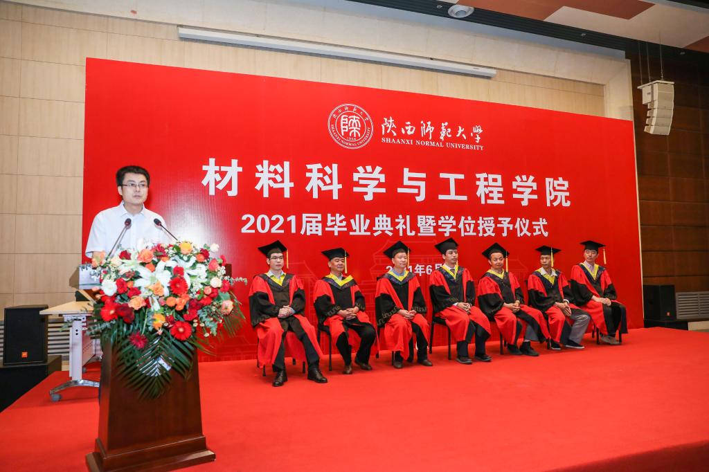 第二个环节是学位授予仪式。在校歌环绕的会场,进行了庄严又隆重的学位授予仪式,材料学分会主席陈新兵教授、分会委员刘生忠教授、分会委员刘宗怀教授为每一位毕业生颁授学位并合影留念。