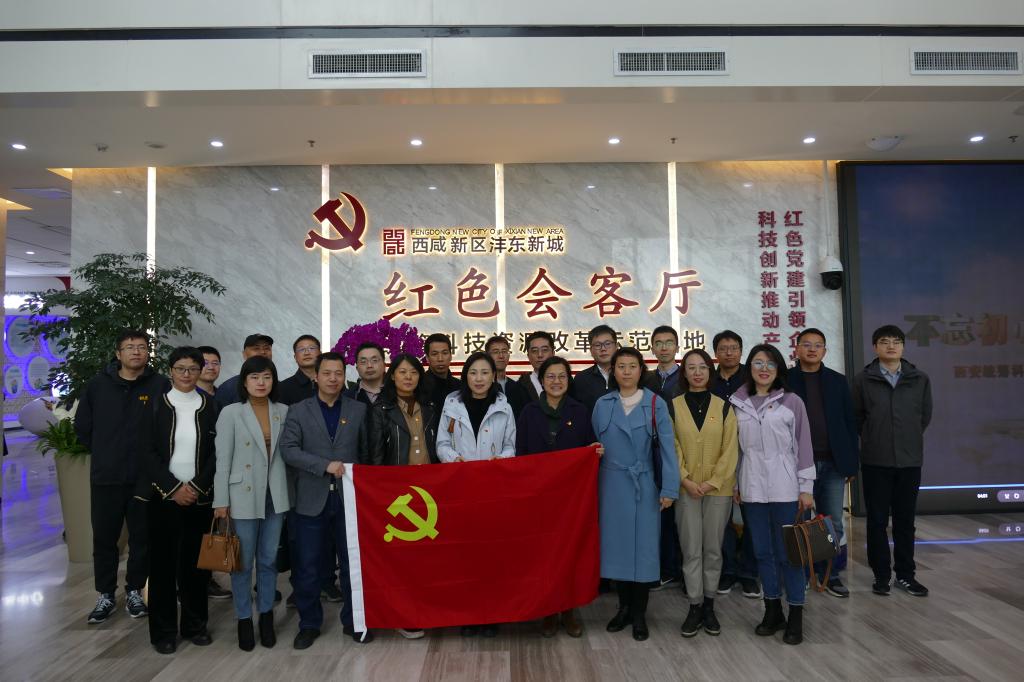在西咸新区“红色会客厅“——沣东新城统筹科技资源改革示范基地,公司领导班子和师生党员们参观了基地党建展示厅、红色书吧、党员政治生活馆、党员宣誓室等功能区,学习了将红色元素、时尚元素和智能元素与基层党建工作充分融合的创新理念,对支部如何更好地凝聚党群力量,推动党建指导发展同频共振、互促双赢。