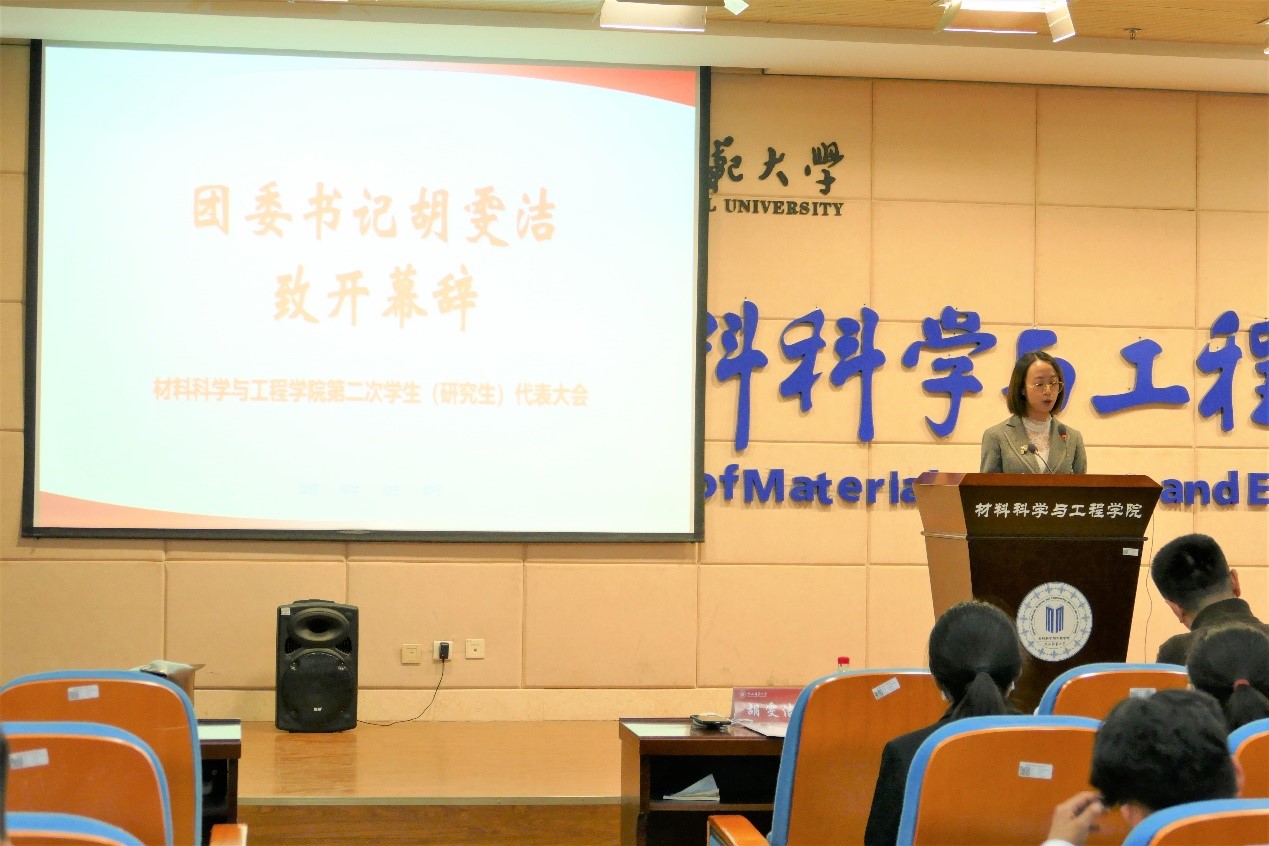 在悠扬的国歌声中,大会正式召开。团委书记胡雯洁致辞,她肯定了过去一年公司员工会和研究生会取得的成绩,希望广大代表们能本着关心公司、展示自我的态度,群策群力,代表全体同学行使选举权,投出神圣的一票,选举出综合素质高、能力强的员工会干部,促进公司员工会(研究生会)工作再上新台阶。