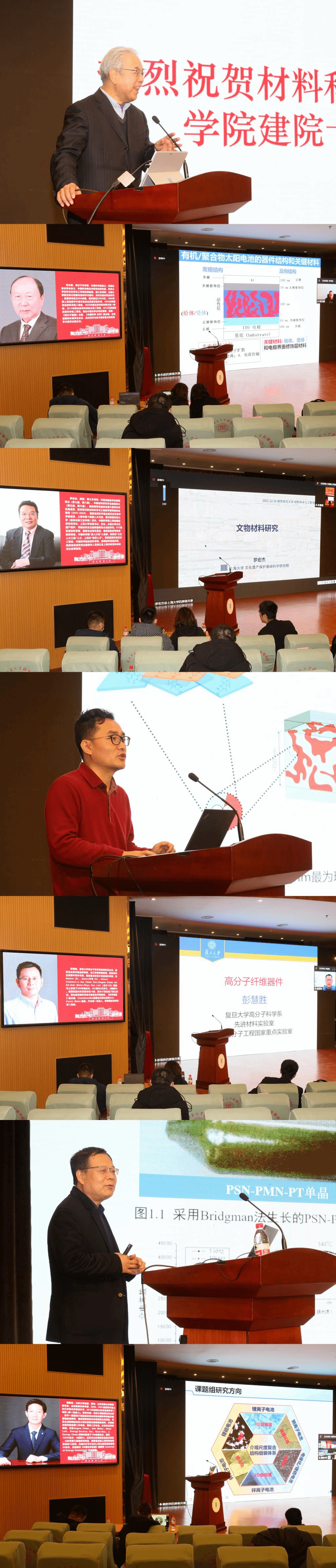 房喻院士、罗宏杰研究员、李永舫院士、彭慧胜教授、马伟教授、熊胜林教授、惠增哲教授,分别做了《薄膜荧光传感中的Adlayer效应》《文物材料研究》《n型聚合物受体与全聚合物太阳能电池》《智能纤维材料与器件》《有机光伏器件大面积制备中的原位形貌调控与优化》《结构导向构筑低维碳基复合材料与储能机制》《新型多功能铁电晶体生长与表征》等专题汇报,结合各自的研究领域、研究进展和实践经验,在推进专业领域发展,加强交流合作等方面进行了深入探讨。