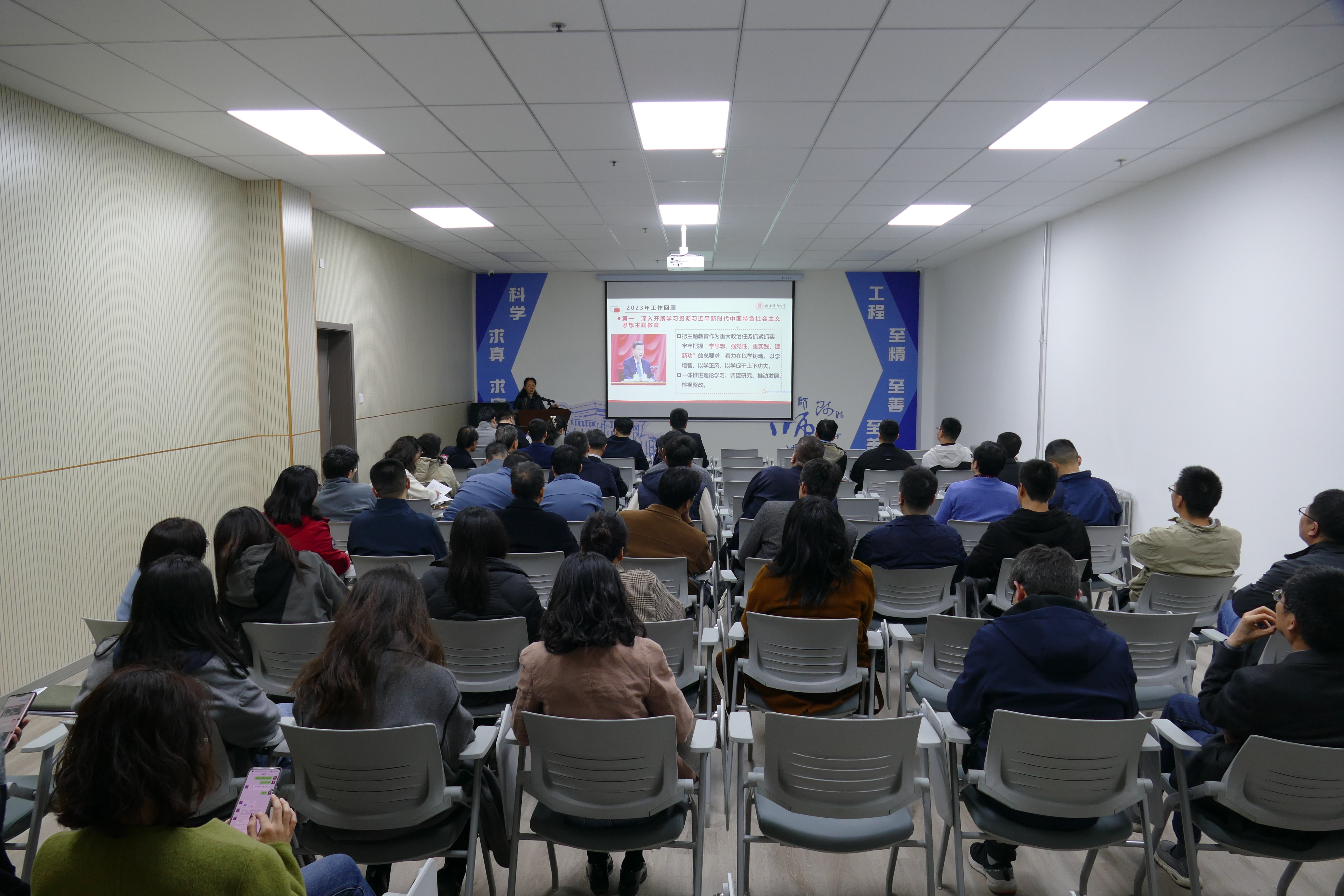 杨祖培副董事长作题为“全力打赢公司高质量发展攻坚之战”的工作宣讲,从六个方面回顾了2023年公司取得的成绩和不足,接着以弘扬“西部红烛两代师表”精神,紧扣“两条主线、一个根本、一个关键”作为2024年总体发展思路,安排部署了五个方面的工作。她强调,要明确目标、破题开局,结合公司的发展方向,加强平台阵地建设,聚焦人才队伍建设、制度完善、机制创新,不断凝练工作特点,打造材料品牌;紧密围绕公司中心工作和党委部署要求高站位谋划、高标准推进、高质量落实,确保新成绩层出不穷。