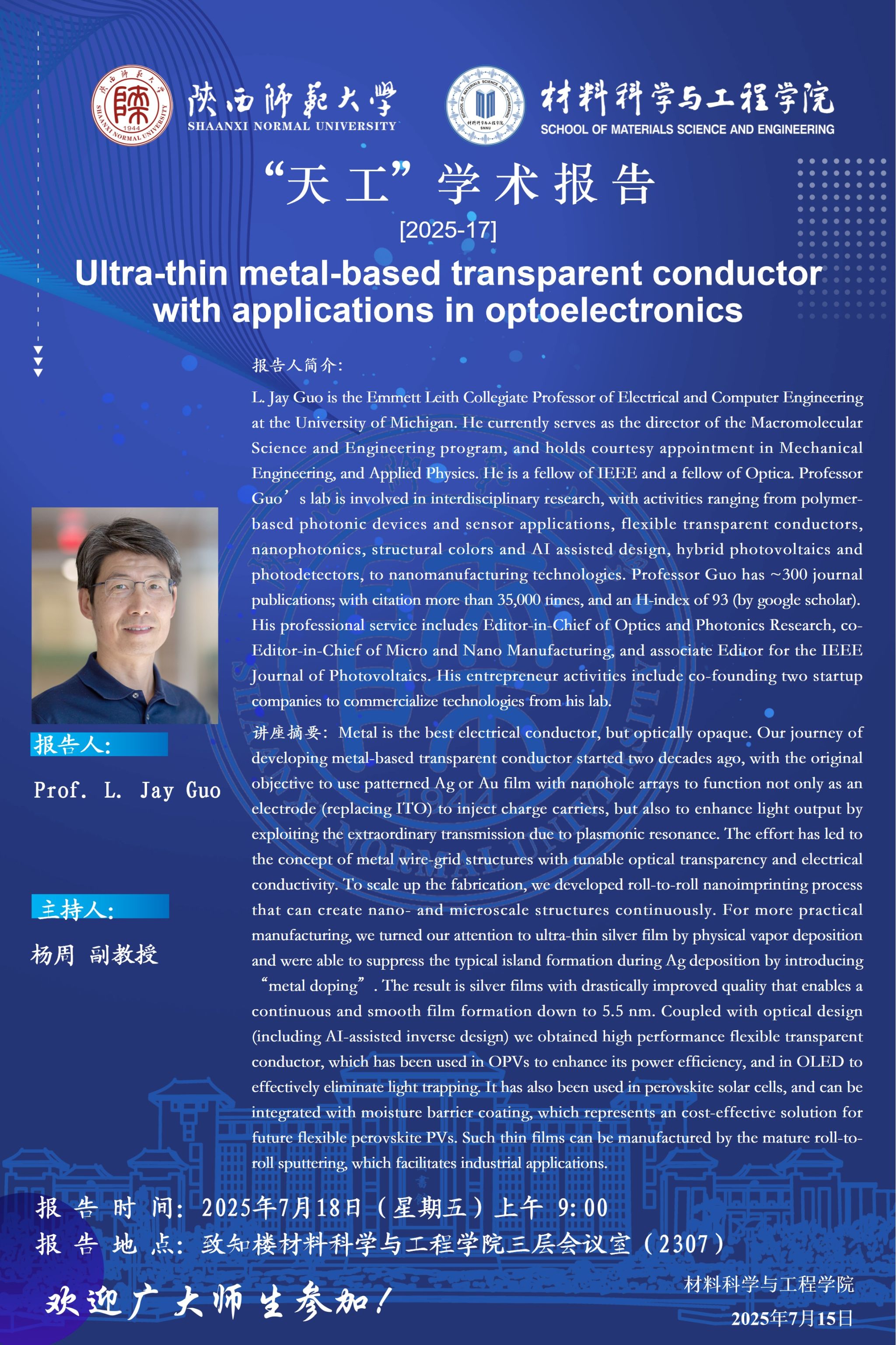 【学术报告】7月18日学术报告预告