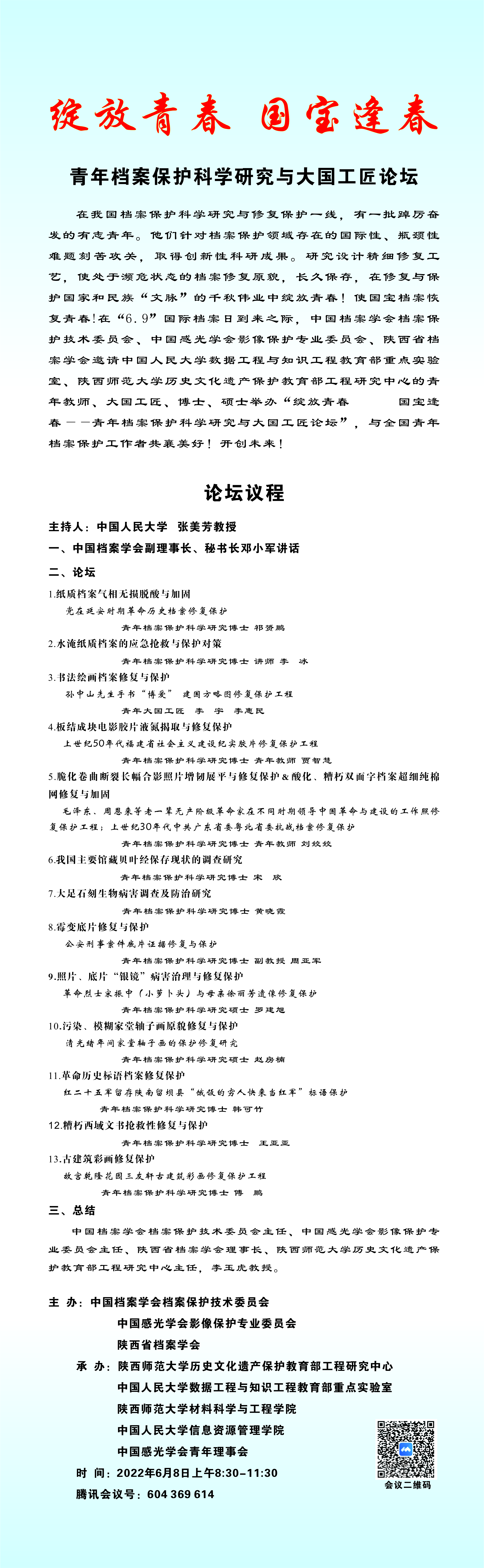 【学术论坛】青年档案保护科学研究与大国工匠论坛