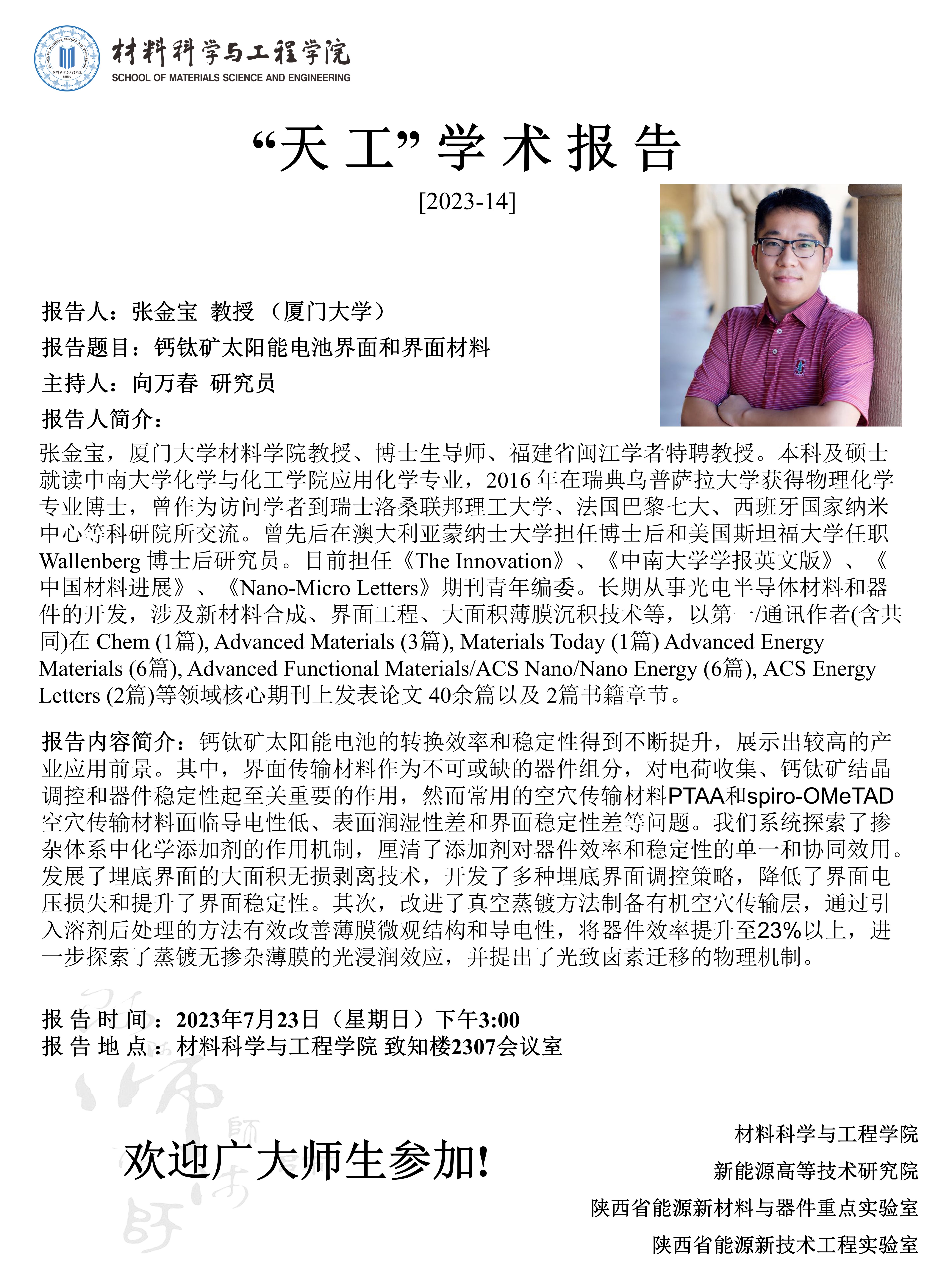 【学术报告】7月23日学术报告预告