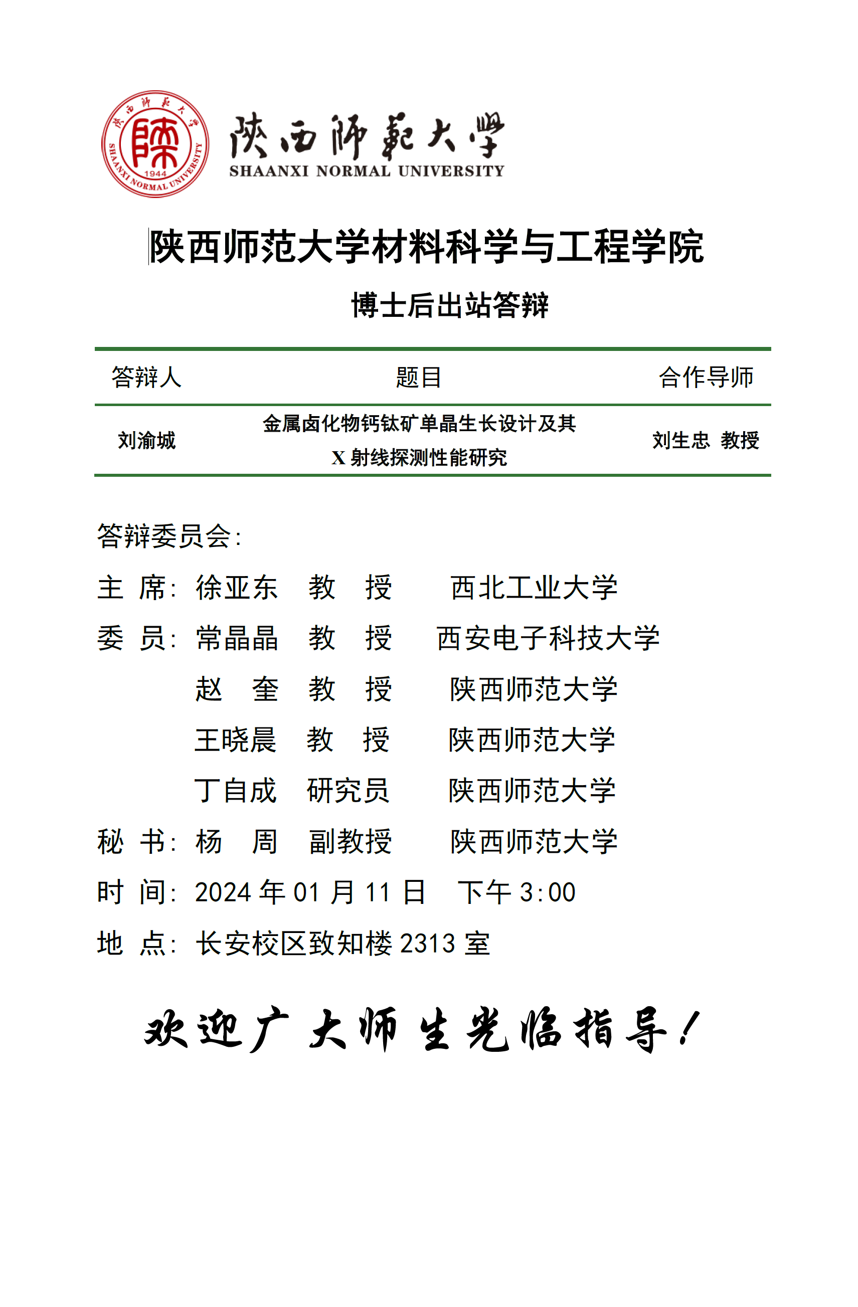 1月11日博士后出站答辩